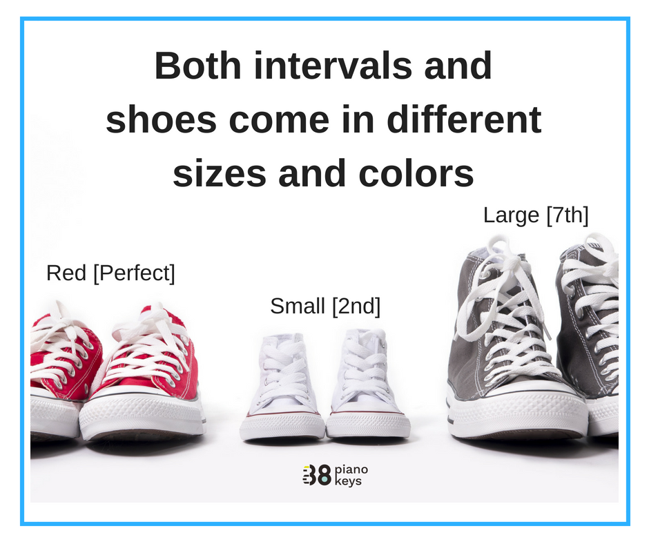 I'm a shoe fanatic so it was not a stretch for me to connect one of my favorite things to something like intervals. Just like shoes, intervals come in different sizes and colors. It's always a good practice to relate the known to the unknown when introducing concepts and shoes make sense.