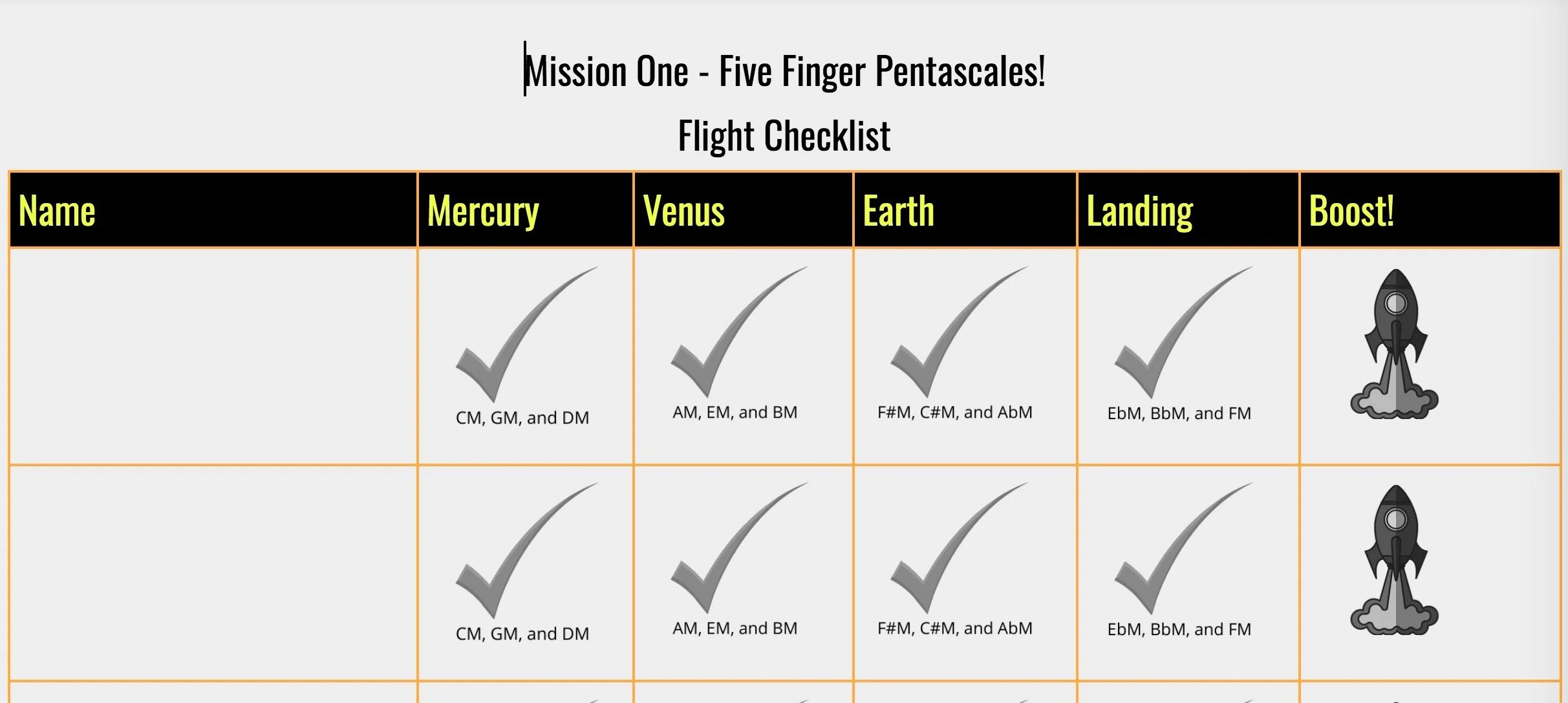 A flipped classroom approach that motivates kids to orbit around the sun while they complete 3 missions and master five finger patterns and one-octave major scales.