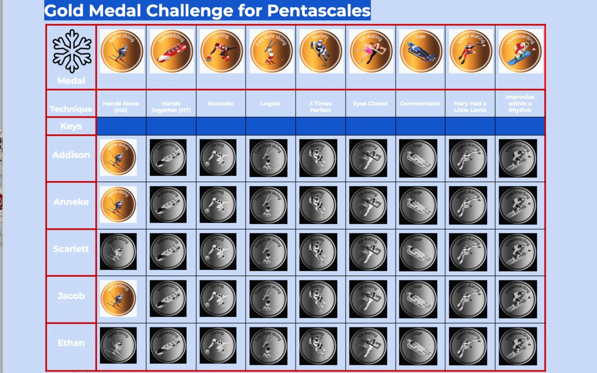 Use and modify pre-made digital badge boards to track progress in playing pentascales and scales.